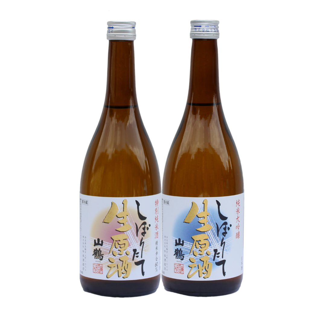 一番人気の山鶴の新酒しぼりたて生原酒をセットです(要冷蔵)。